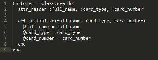 This is functionally equivalent to regular class definition, but more explicit. By convention, classes are referenced by constants in Ruby. This is why we're assigning the object returned by Class.new to Customer constant, but we can assign it to a regular variable as well. On the other hand, if you don't use a constant in a regular class definition, you will get an error: