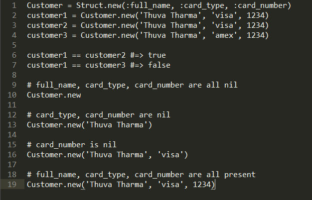 This has all the features of Customer class we created with regular class definition as well as using Class.new above. In addition, the customer objects will have equality as per value object semantics.