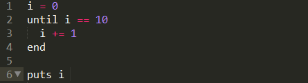 Until loops are almost identical to while loops except that they will loop as long as the conditional statement is false. The while loop will loop while the condition is true, the until loop will loop until the condition is true. This example is the functional equivalent of the while loop example, except using an until loop, until i == 10 . The variable is incremented by one until its value equals ten.